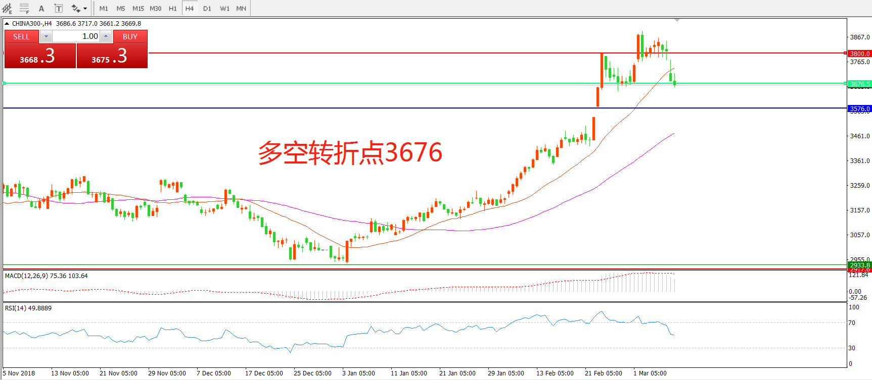 多空转折点:3676.00