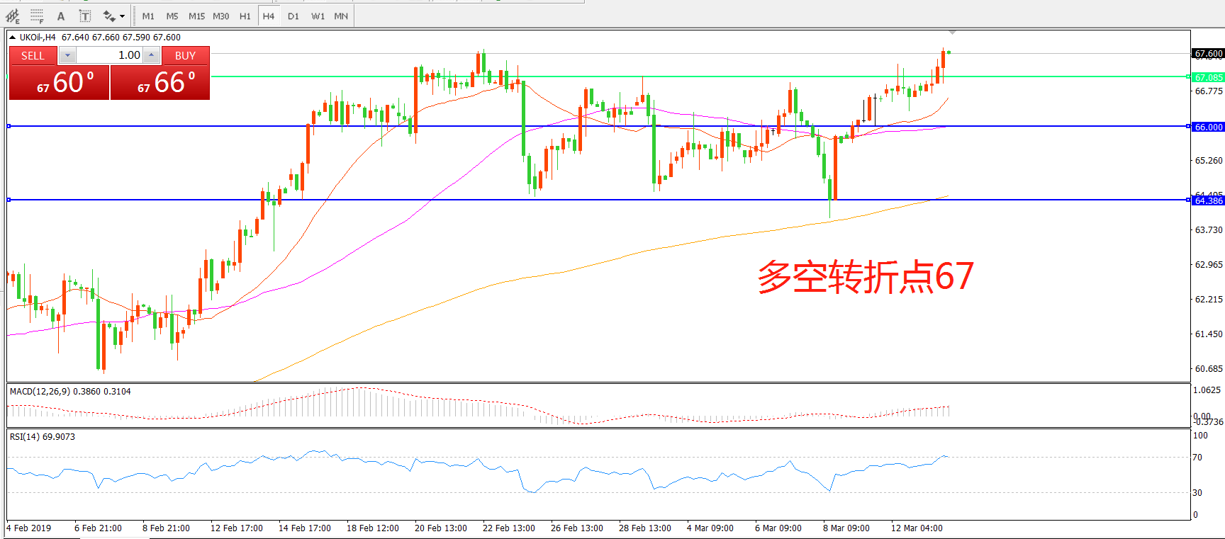 交易策略:在67.00   之上看涨,目标69.00    72.00