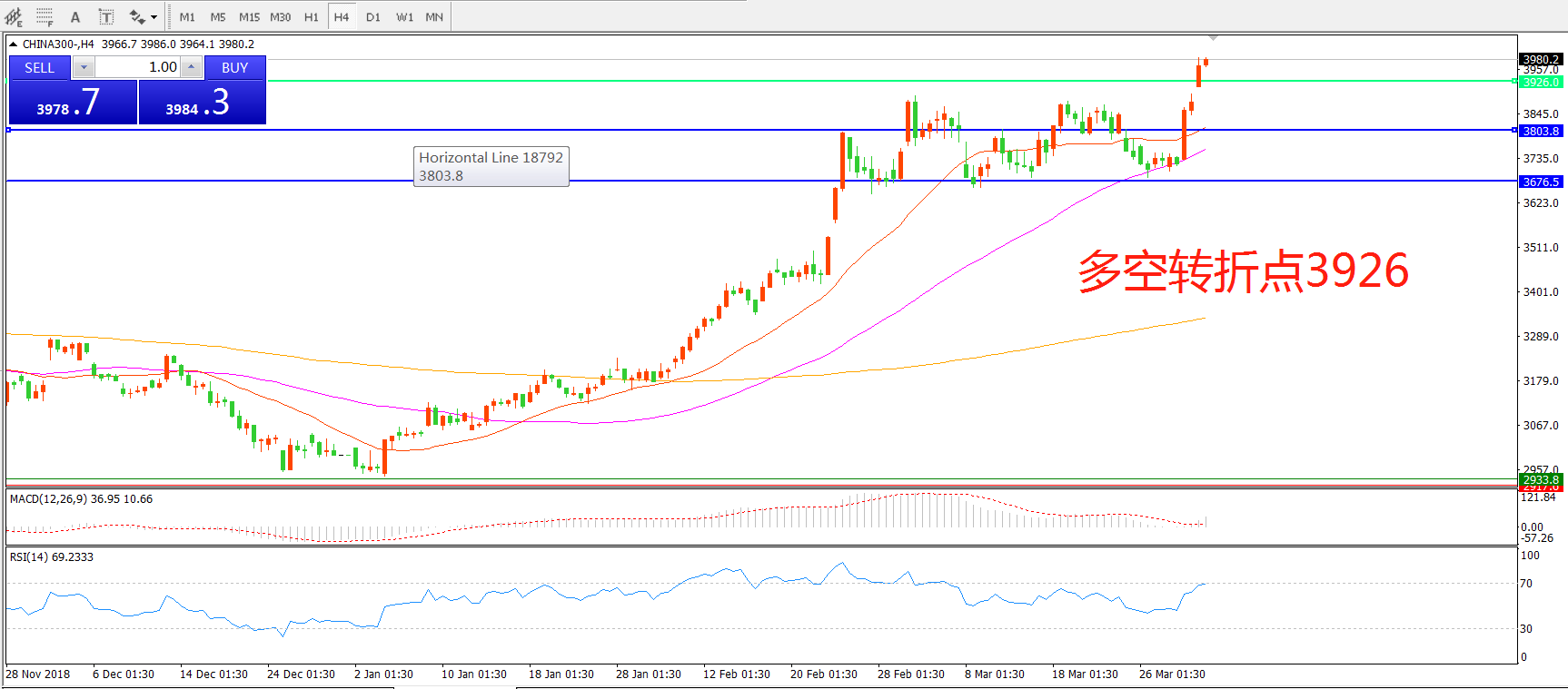 多空转折点:3926.00
