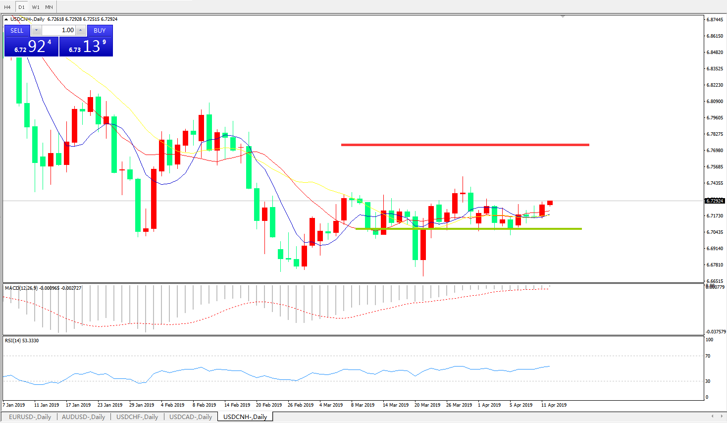 美元兑人民币USDCNH    日线图:
