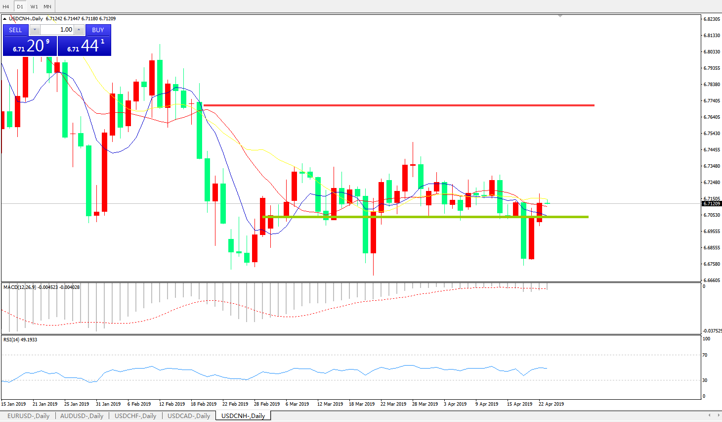 交易策略: 在6.6990之上,看涨,目标价位为6.7845,然后为6.8185。