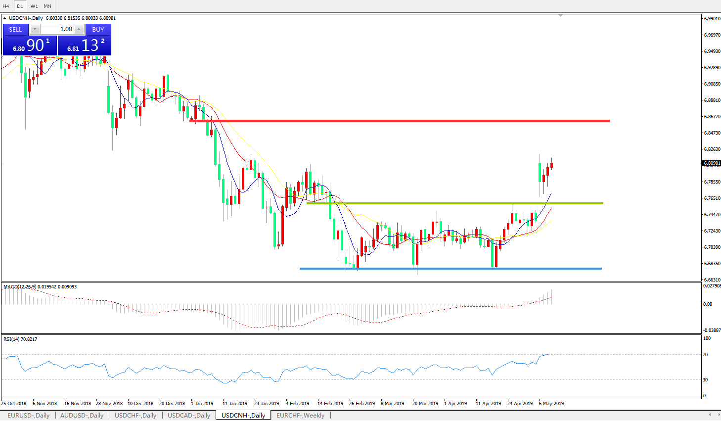 技术面简析:日线图均线呈有序多头排列看多,MACD上穿0轴且动能柱0轴上方快速放量,RSI急速走升,汇价企稳多空转折区域维持良好攻势,预计短期汇价或存在整理可能,中期不排除有进一步上行空间,重点关注中美贸易谈判最新进展及特朗普推特更新情况。