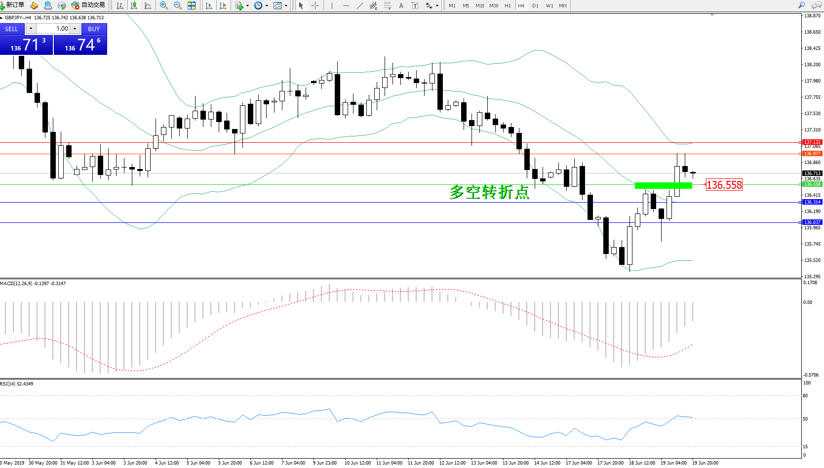 交易策略:136.558上方看涨,目标136.977137.132