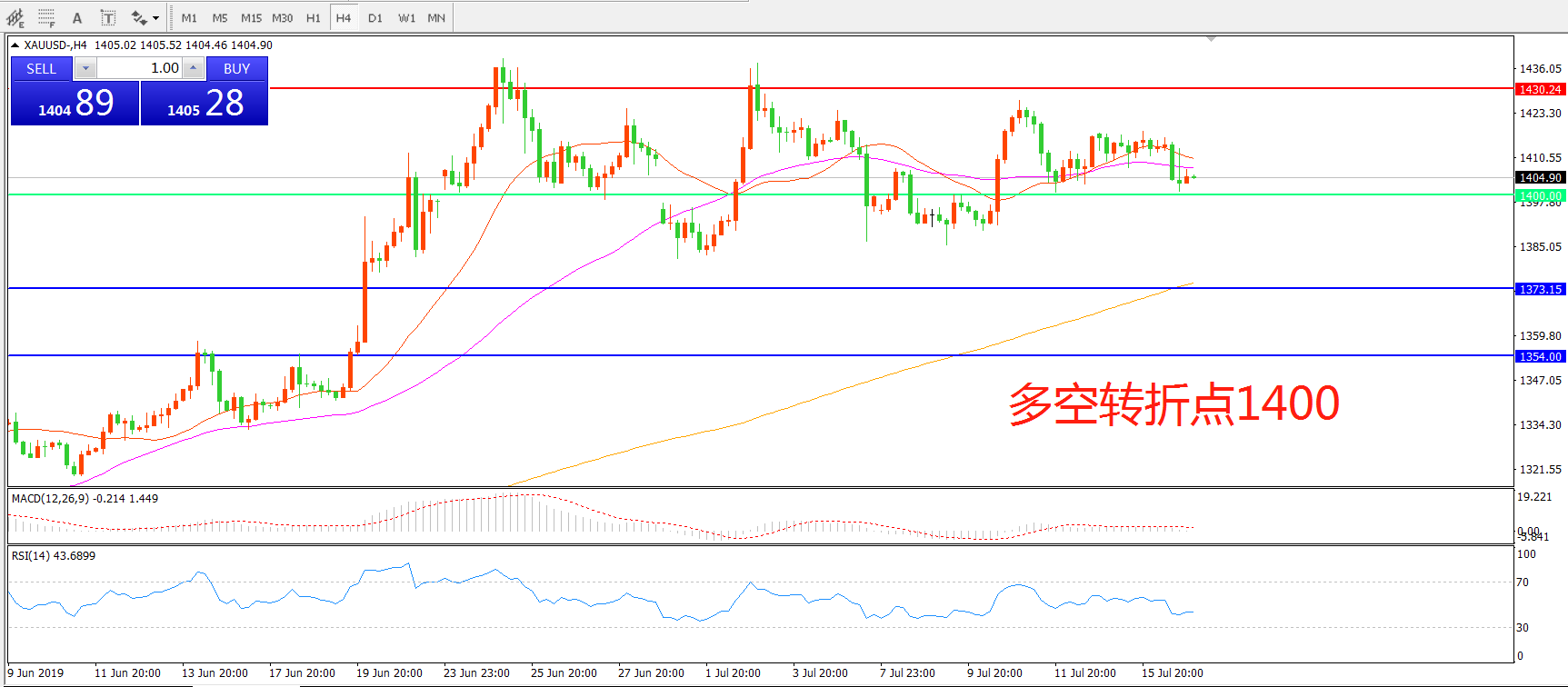 多空转折点:1400.00