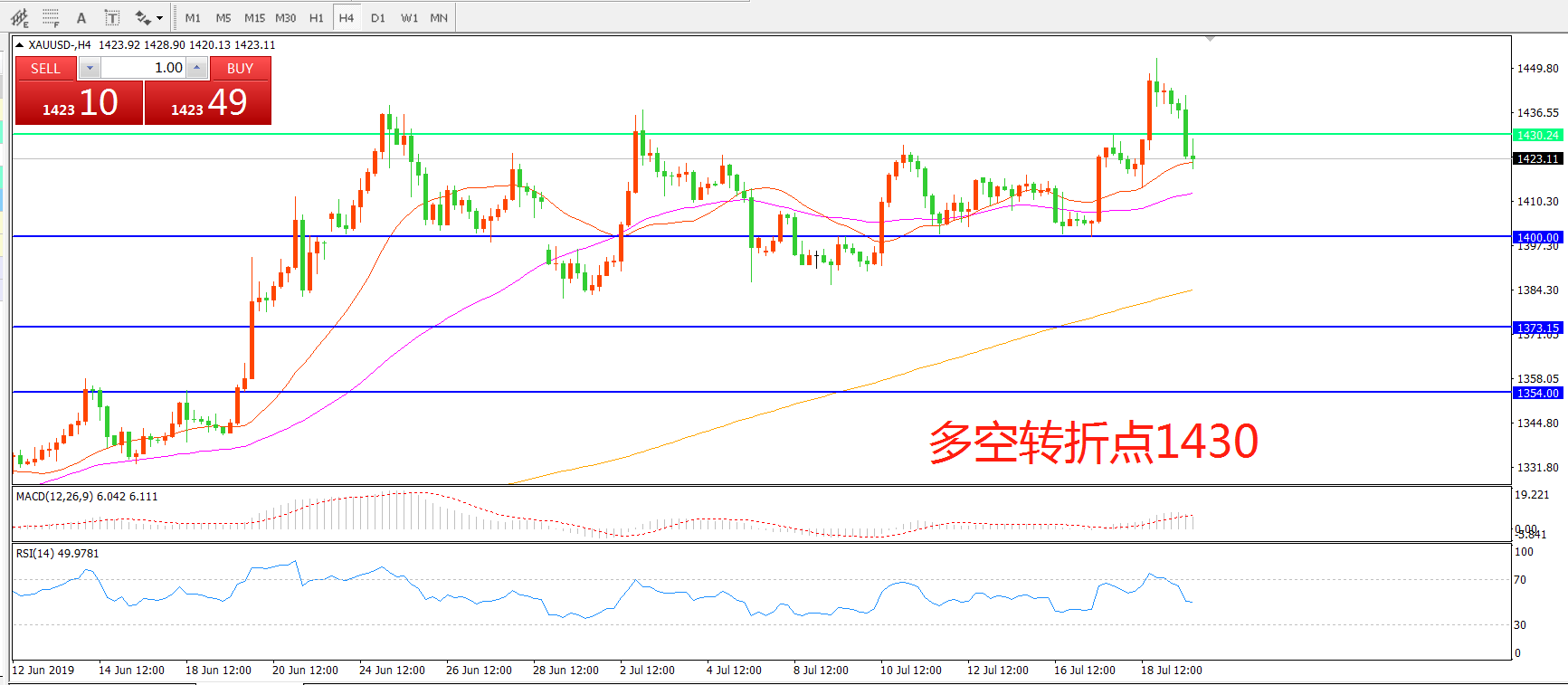 多空转折点:1430.00