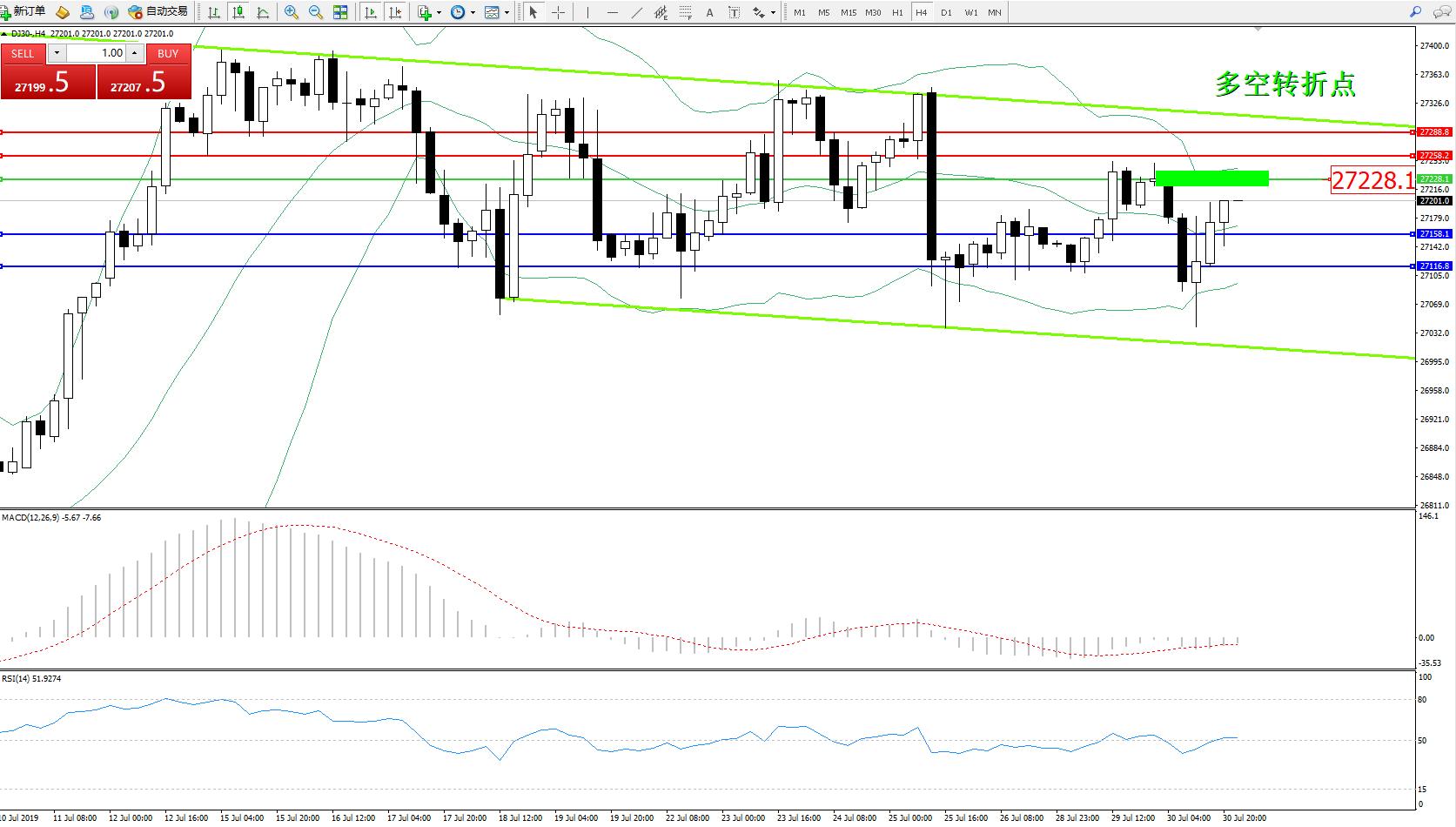 交易策略:27228下方看跌,目标27158、27116