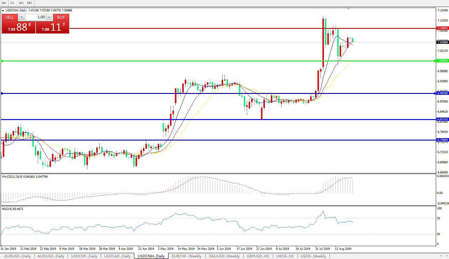 交易策略: 在7.0000之上,看涨,目标价位为7.1000,然后为7.2000。