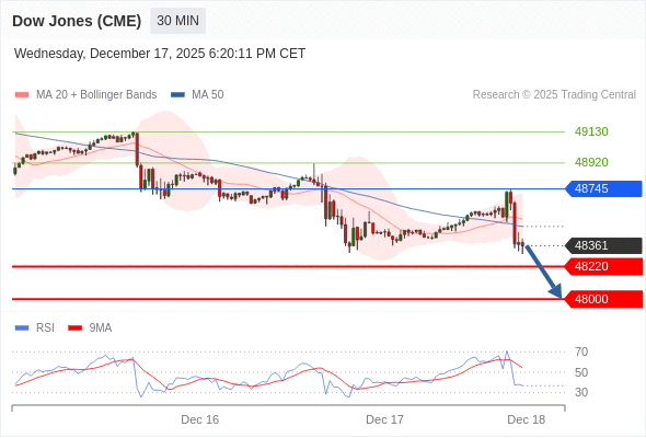 在 48745 之下,看跌,目标价位为 48220 ,然后为 48000 。