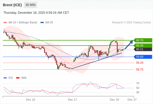在 59.60 之上,看涨,目标价位为 60.35 ,然后为 60.70 。