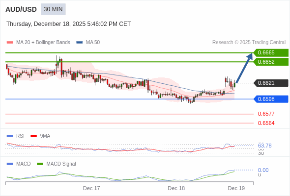澳元/美元 当日内 : 看涨,当 0.6598 为支撑位。