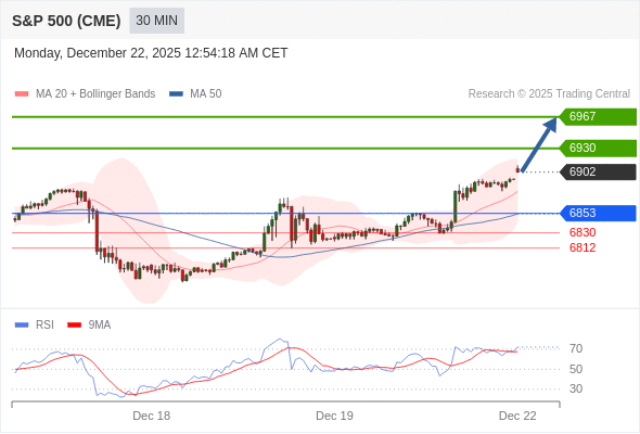 在 6853 之上,看涨,目标价位为 6930 ,然后为 6967 。