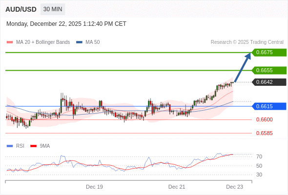在 0.6615 之上,看涨,目标价位为 0.6655 ,然后为 0.6675 。