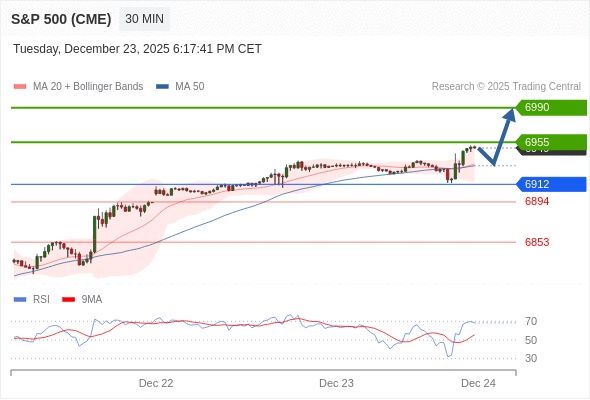 在 6912 之上,看涨,目标价位为 6955 ,然后为 6990 。