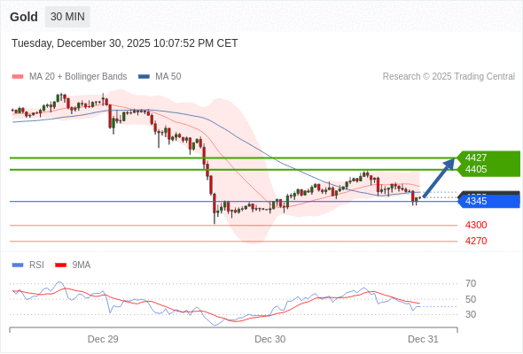 在 4345 之上,看涨,目标价位为 4405 ,然后为 4427 。