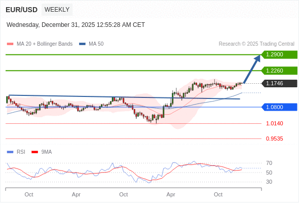 在 1.0800 之上,看涨,目标价位为 1.2260 ,然后为 1.2900 。