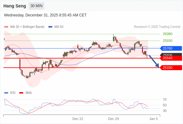 在 25760 之下,看跌,目标价位为 25540 ,然后为 25330 。