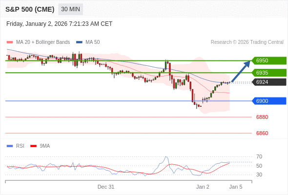 在 6900 之上,看涨,目标价位为 6935 ,然后为 6950 。