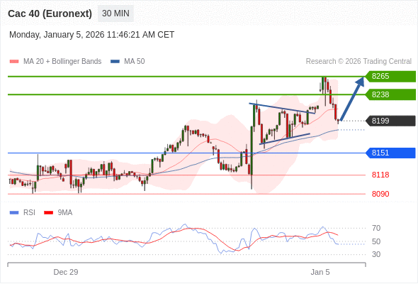 在 8151 之上,看涨,目标价位为 8238 ,然后为 8265 。