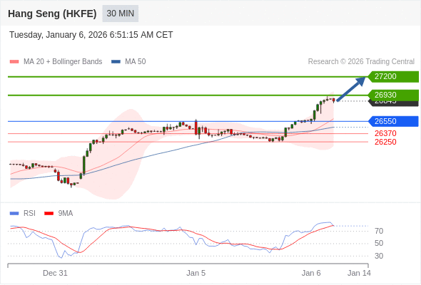 在 26550 之上,看涨,目标价位为 26930 ,然后为 27200 。
