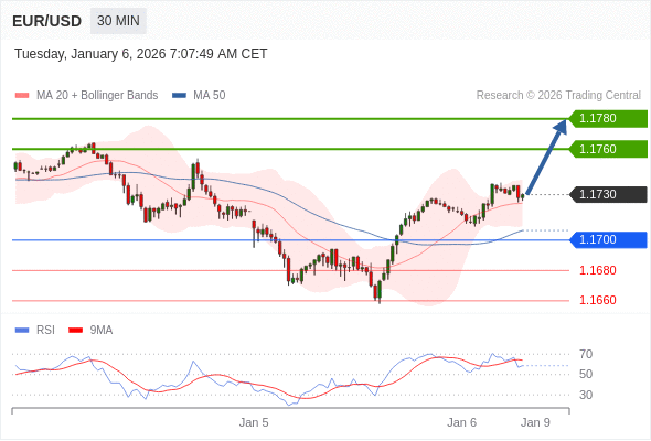在 1.1700 之上,看涨,目标价位为 1.1760 ,然后为 1.1780 。