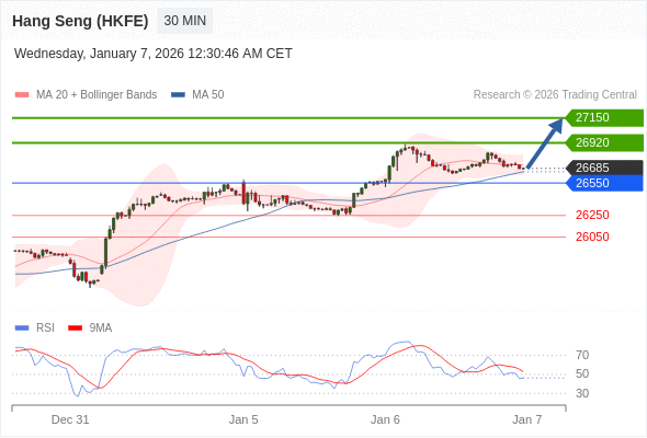 在 26550 之上,看涨,目标价位为 26920 ,然后为 27150 。