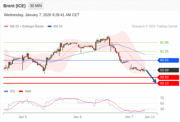 在 60.65 之下,看跌,目标价位为 59.50 ,然后为 59.10 。