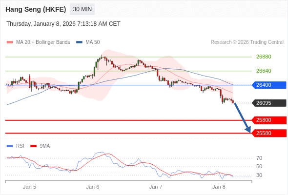 在 26400 之下,看跌,目标价位为 25800 ,然后为 25580 。