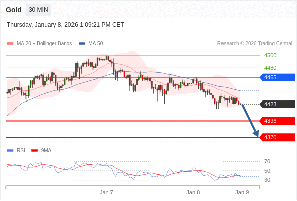 在 4465 之下,看跌,目标价位为 4396 ,然后为 4370 。