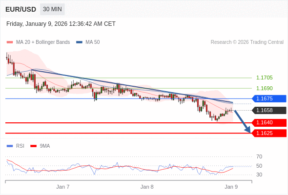 交易策略: 在 1.1675 之下,看跌,目标价位为 1.1640 ,然后为 1.1625 。