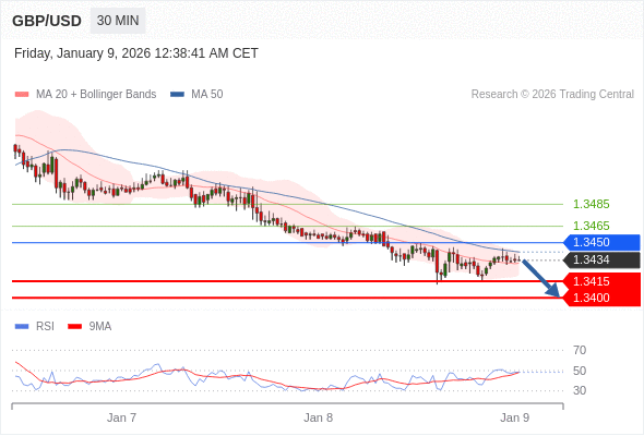 在 1.3450 之下,看跌,目标价位为 1.3415 ,然后为 1.3400 。