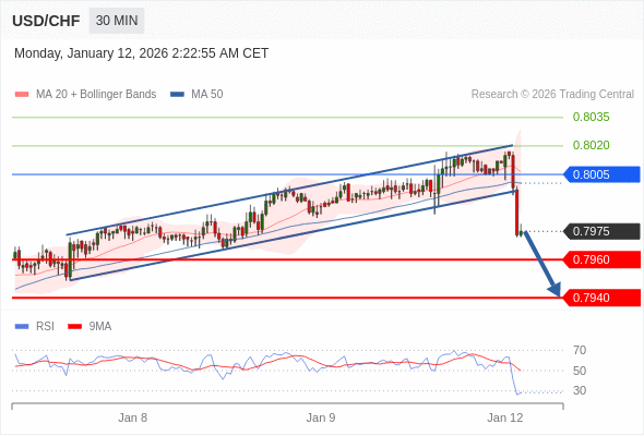 在 0.8005 之下,看跌,目标价位为 0.7960 ,然后为 0.7940 。