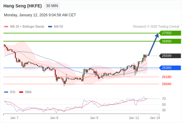 在 26360 之上,看涨,目标价位为 26890 ,然后为 27050 。
