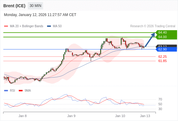 在 62.90 之上,看涨,目标价位为 64.00 ,然后为 64.40 。