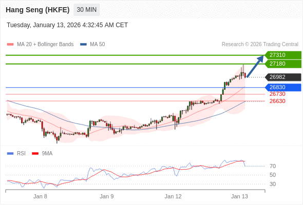 在 26830 之上,看涨,目标价位为 27180 ,然后为 27310 。