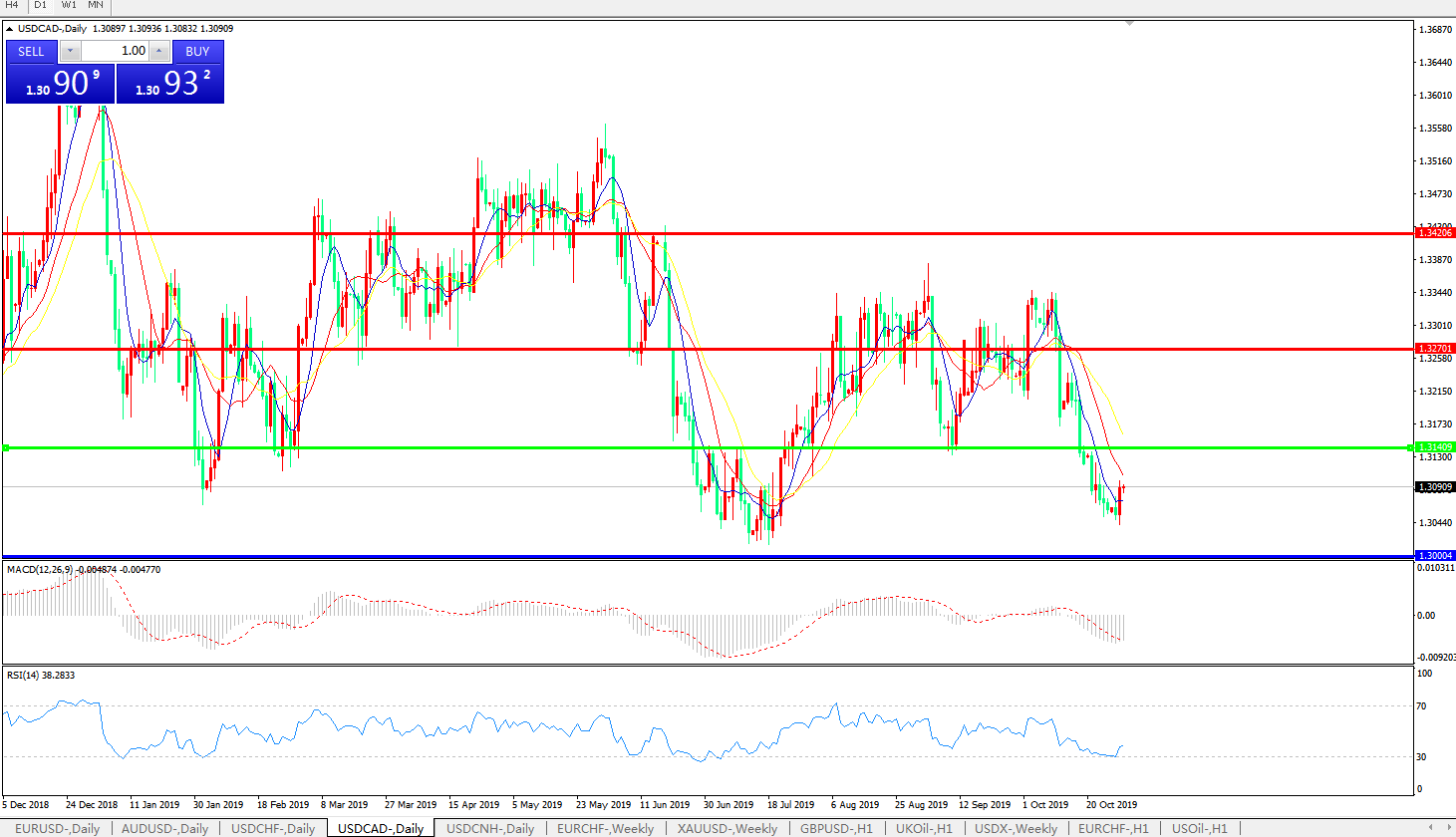 美元兑加元USDCAD 日线图: