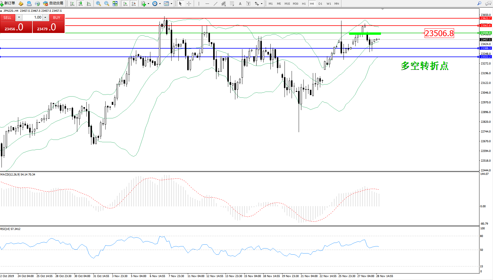 交易策略:23506下方看跌,目标23388、23322