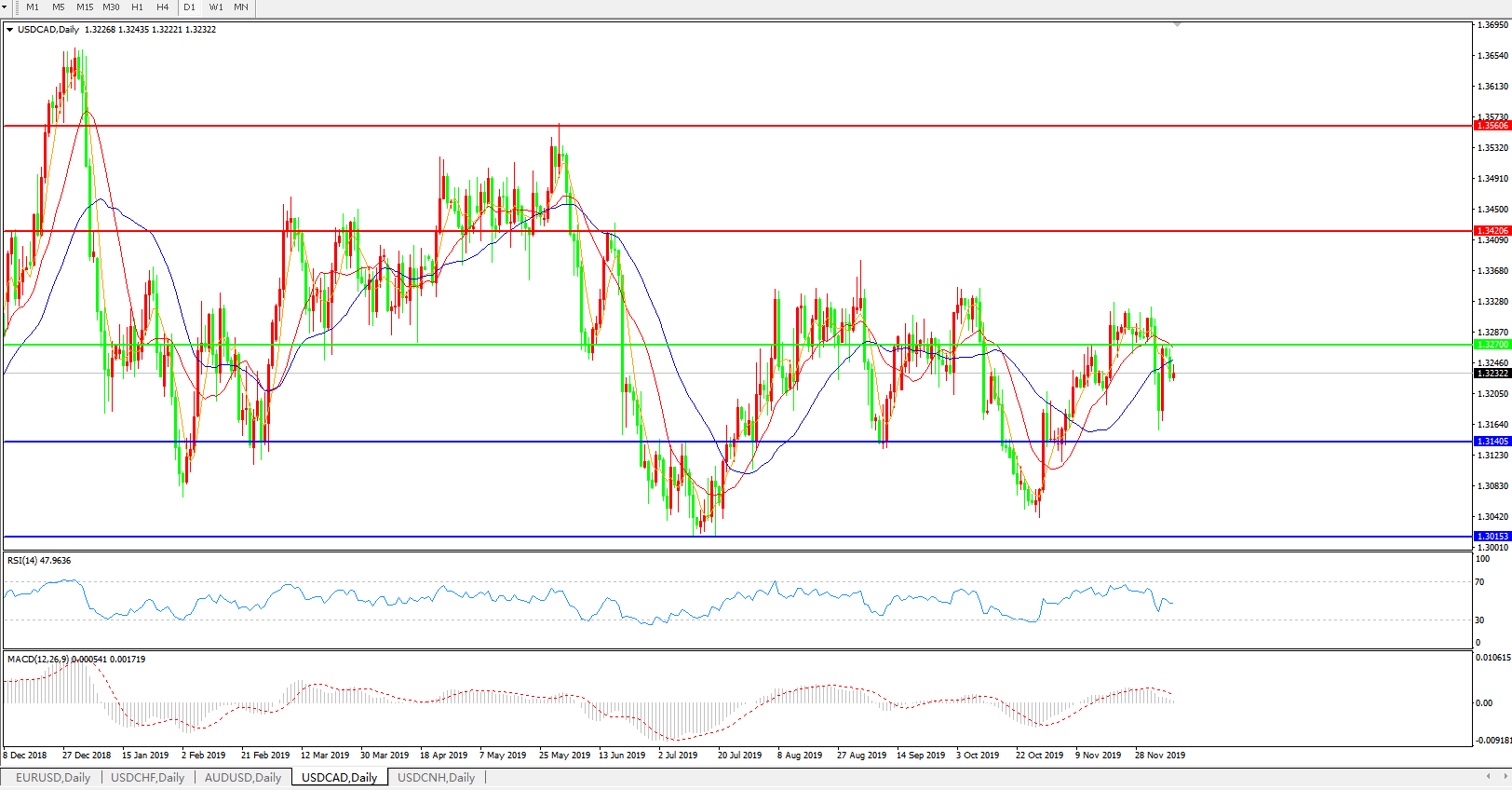美元兑加元USDCAD 日线图: