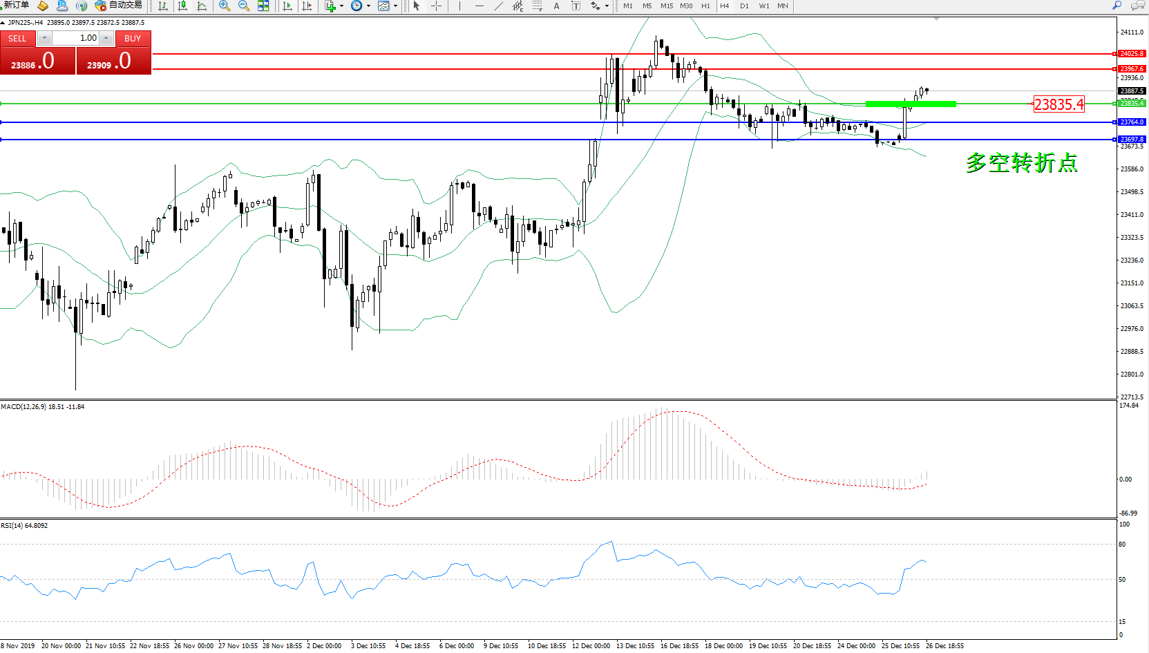 技术点评:高位弱势整理不断收窄后,得到相应支撑,多头动力强势入场提振上行,延续布林带指标上轨不断上移中,且布林带指标呈张口走势中,MACD指标空头区域突破0轴线后不断上行中,RSI指标处于多头区域上扬走势持续中;