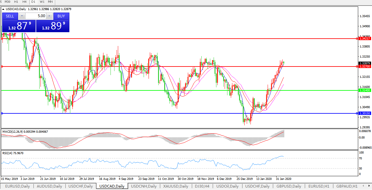 美元兑加元USDCAD 日线图: