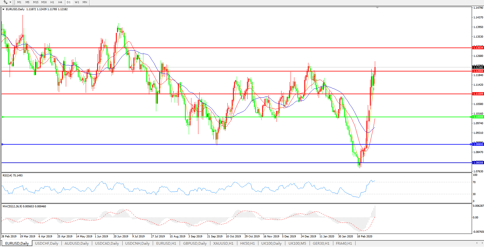 欧元兑美元EURUSD   日线图: