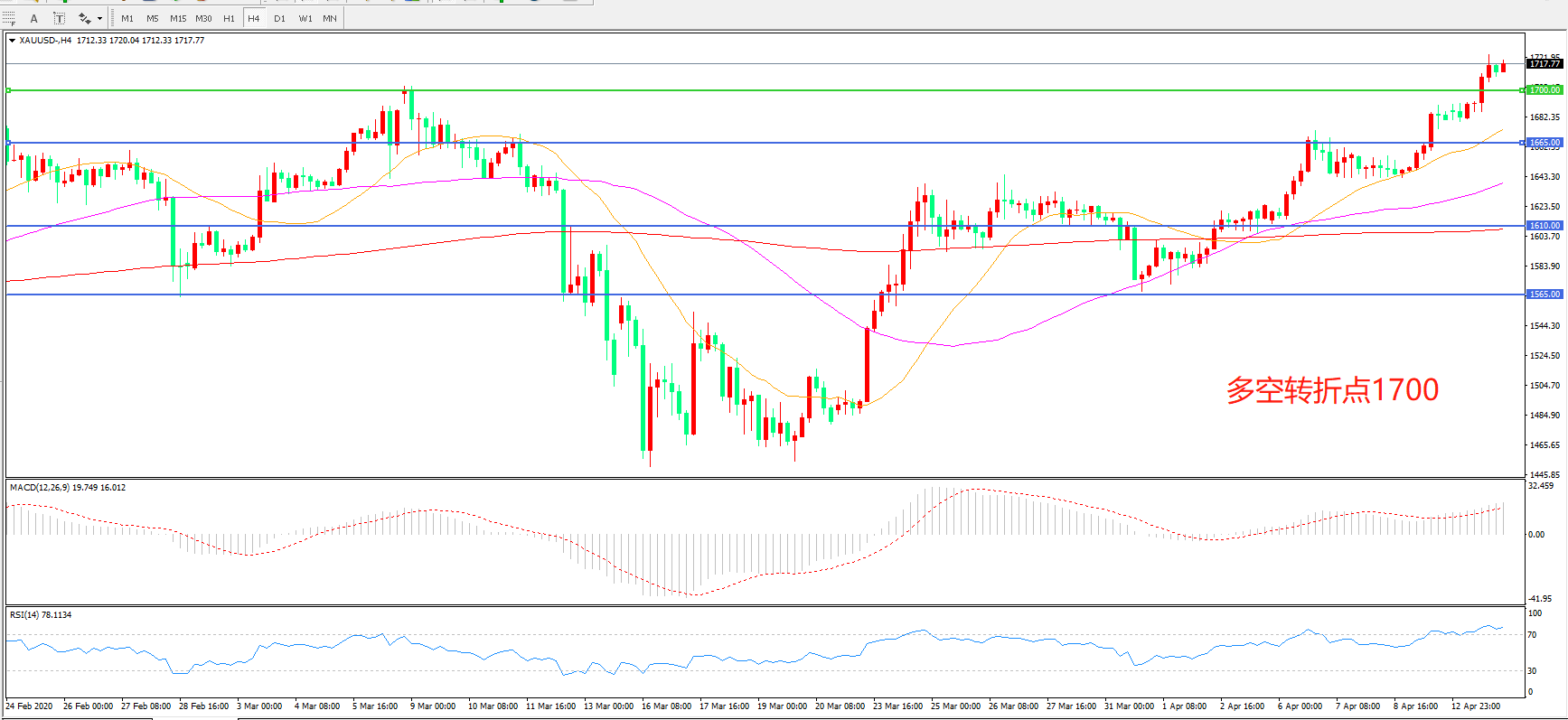 多空转折点:1700.00