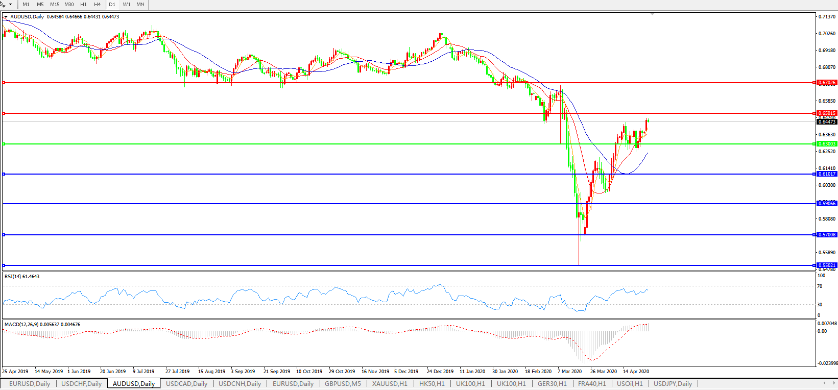 澳元兑美元AUDUSD    日线图: