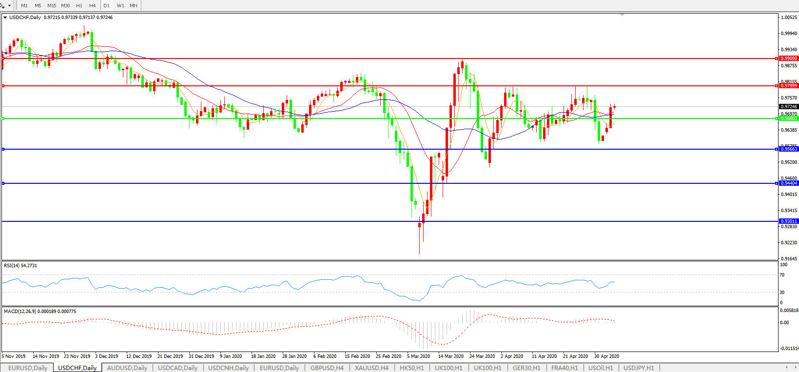 交易策略:0.9680上方看涨,目标0.9800、0.9900