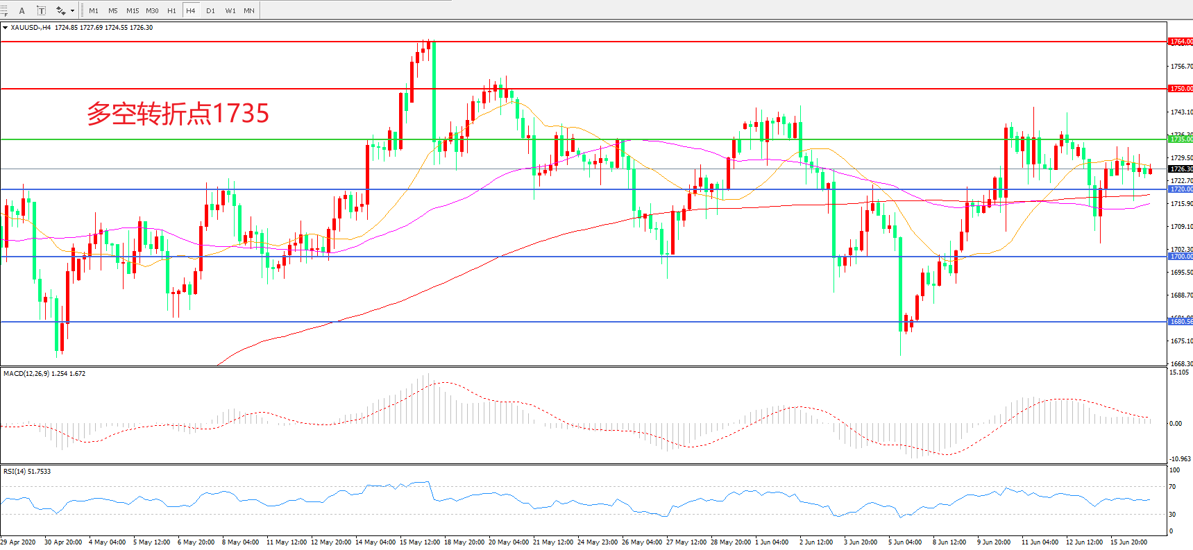 多空转折点:1735.00
