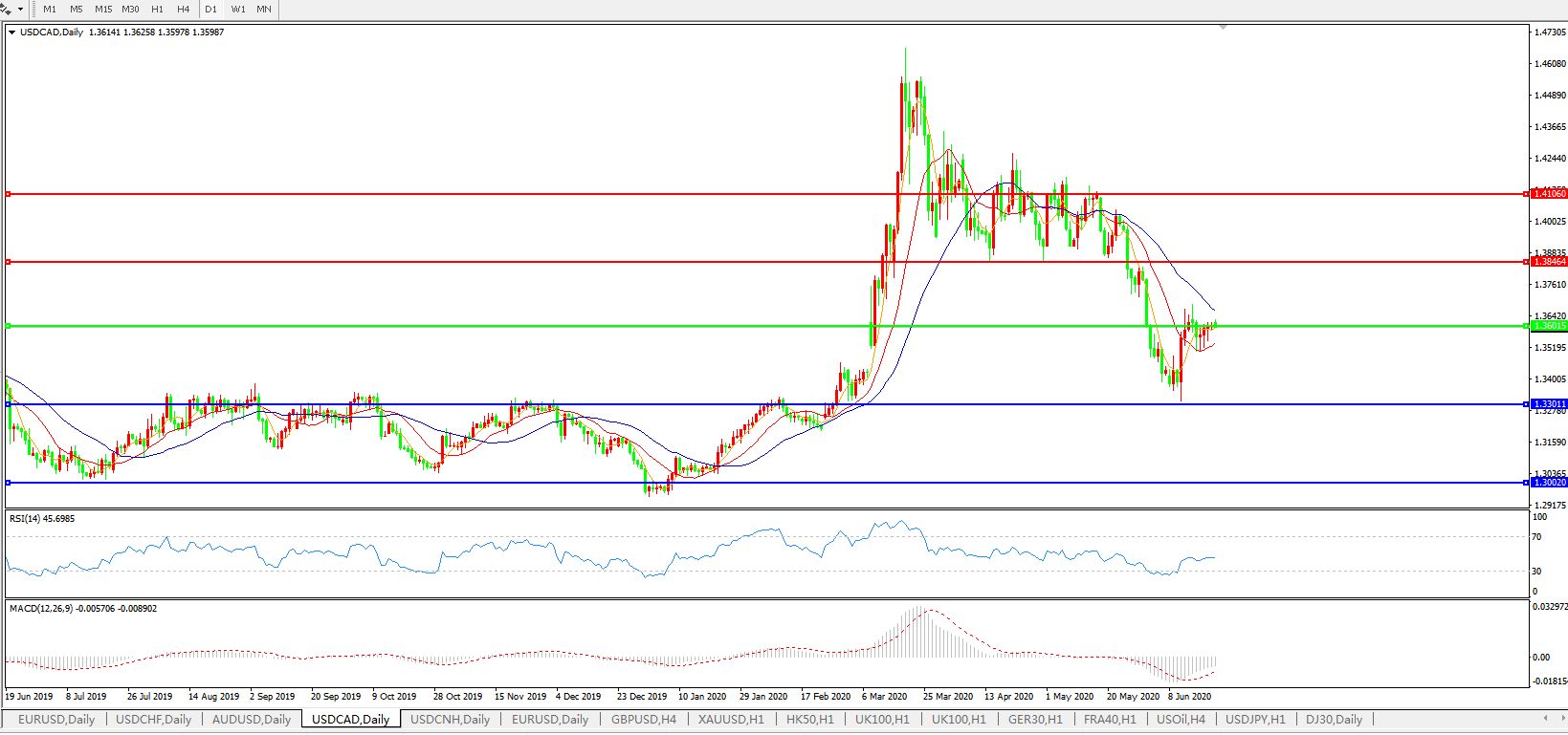 美元兑加元USDCAD    日线图: