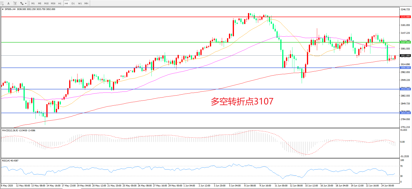 交易策略:在3107.00之下看跌,目标3000.00 2910.00