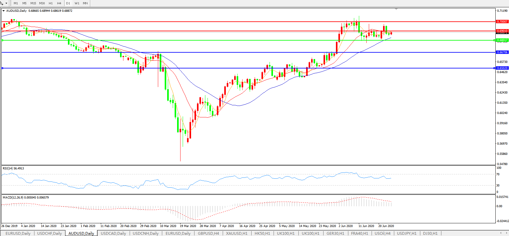 澳元兑美元AUDUSD    日线图: