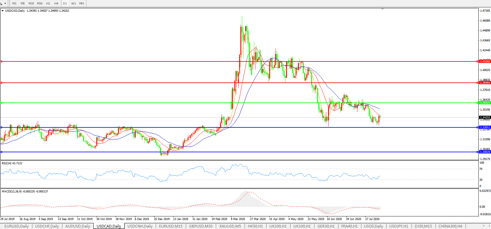 美元兑加元USDCAD 日线图: