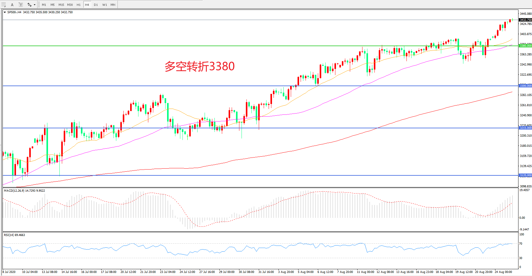 交易策略:在3380.00之上看涨,目标3450.00         3530.00