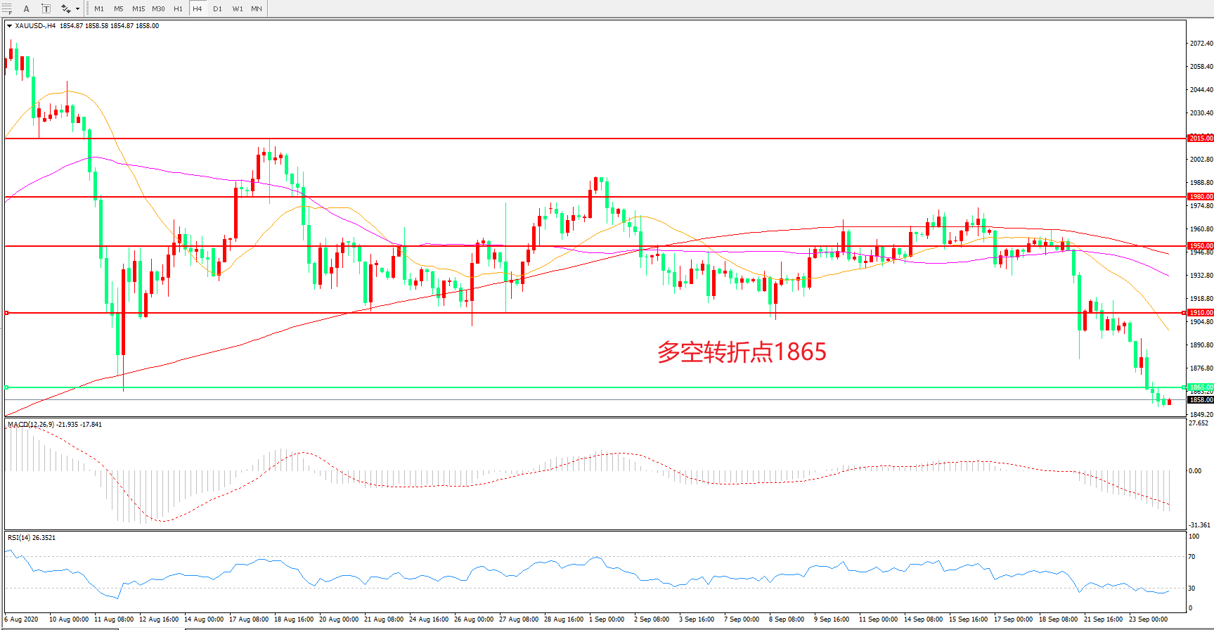 多空转折点:1865.00